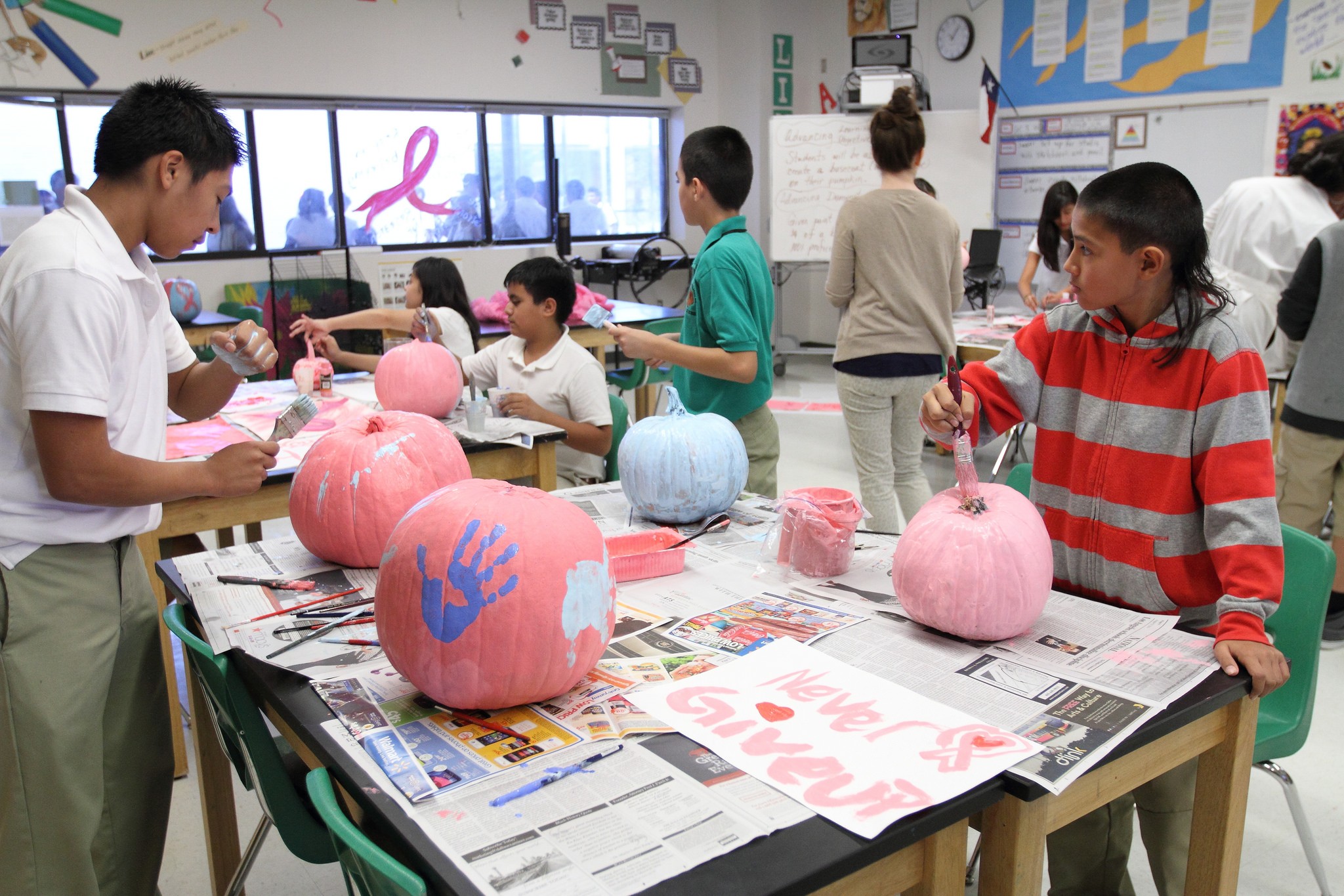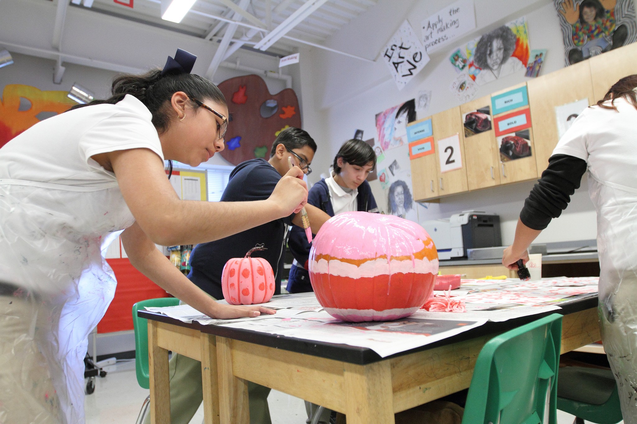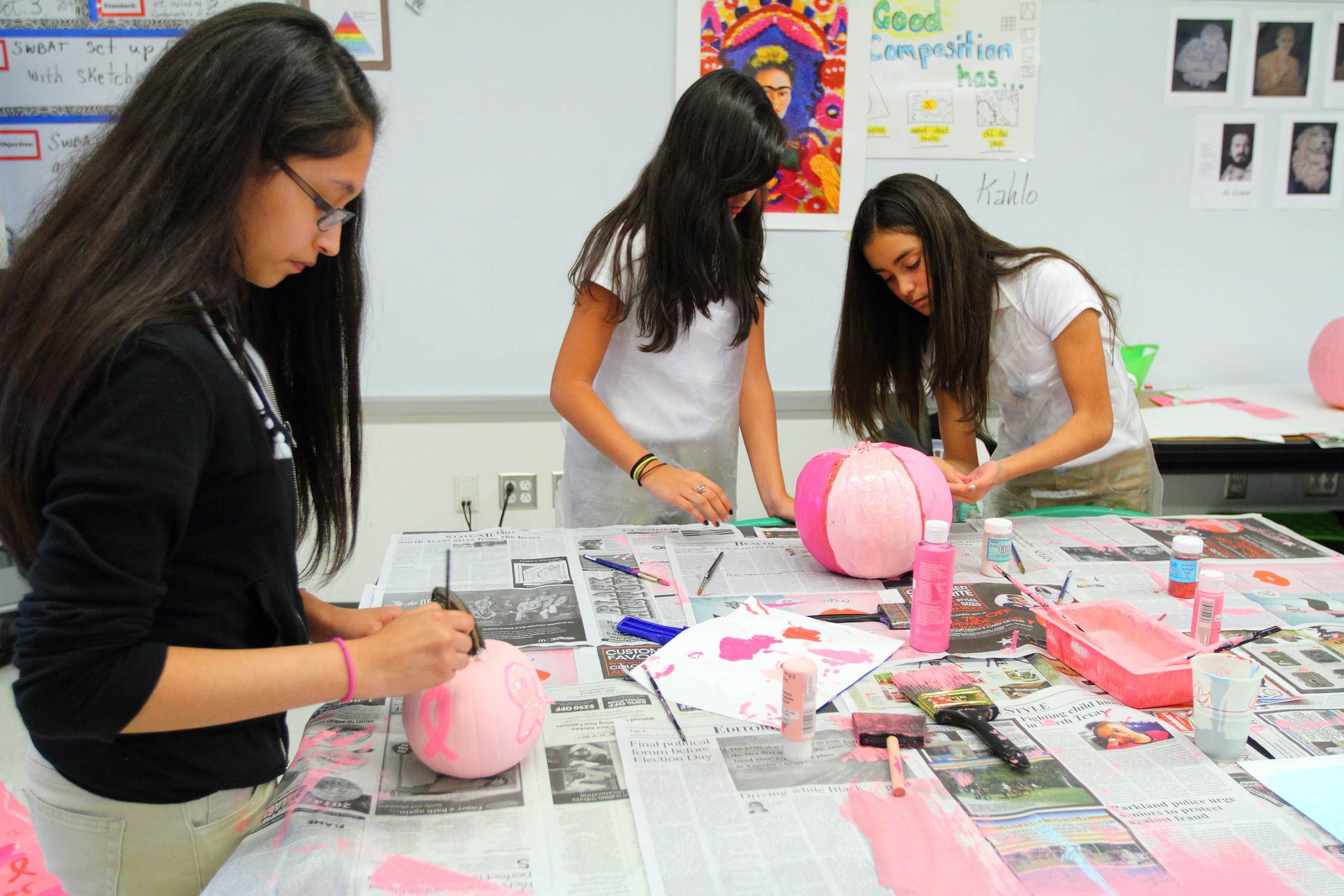 She and classmate Myra Gonzalez are now helping paint the pallet of pumpkins to be on display during the Susan G. Komen Race for the Cure survivors’ tent.