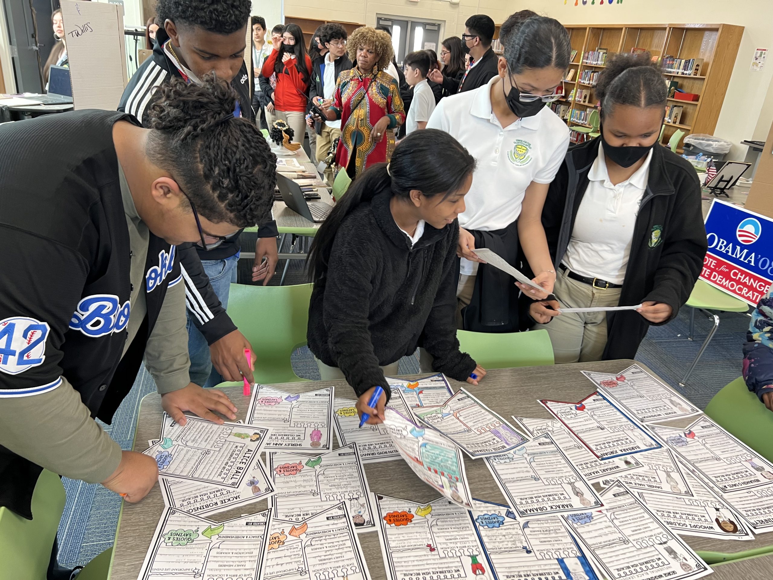 Julian S., an eighth-grade student at STAG, was excited to help execute the pop-up museum. “We researched ideas and helped organize the museum,” Julian said. “We are thankful that our teachers and community members donated their items to create this experience for us.” Among the items on display in the museum are a biography of Kobe Bryant, which he autographed, and a Black doll set representing the significance of cultural representation in toys.