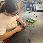 En el salón de joyería, Naomi H., quien próximamente empezará grado 12 en Booker T. Washington High School for the Performing and Visual Arts, moldeó cera de forma que se pueda vestir y la fundió en resina y metal.
