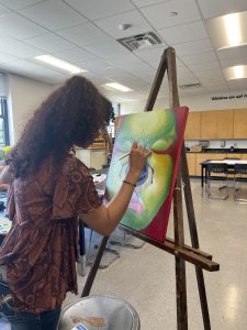 “Pasaron la semana experimentando con nuevos materiales y haciendo su propio arte”, dijo Kristin McCloskey, gestora de proyectos del departamento. “Es importante que los estudiantes tengan la oportunidad de continuar su desarrollo creativo más allá del horario escolar, donde pueden realmente explorar su voz”.