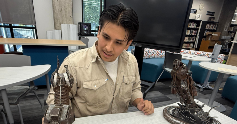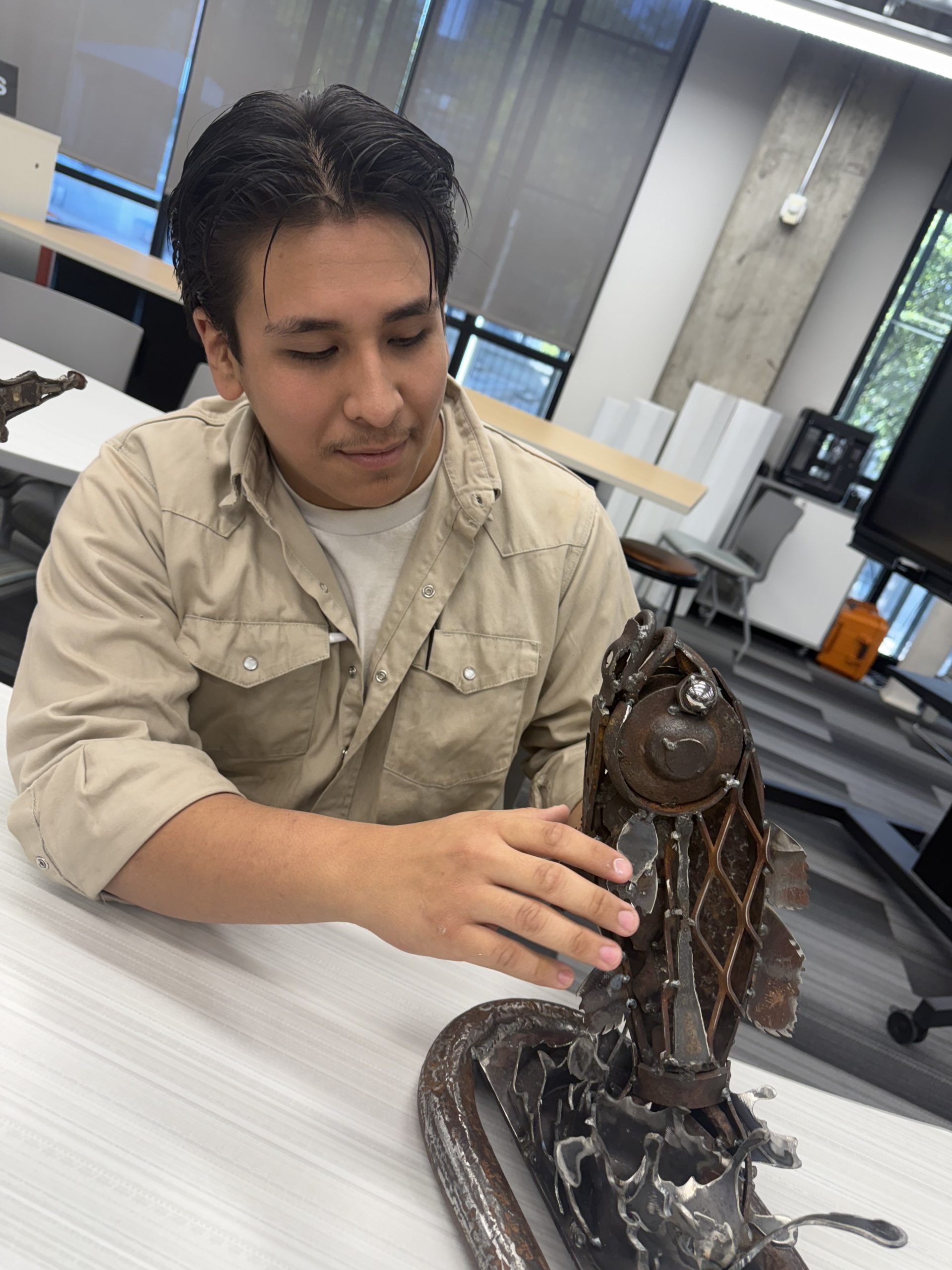 Lucas, whose older brothers all graduated from Booker T., initially came thinking he would follow in their footsteps as a painter. Over time, his focus shifted to 3-D art, where he uses scrap metal to create sculptures of Texas wildlife