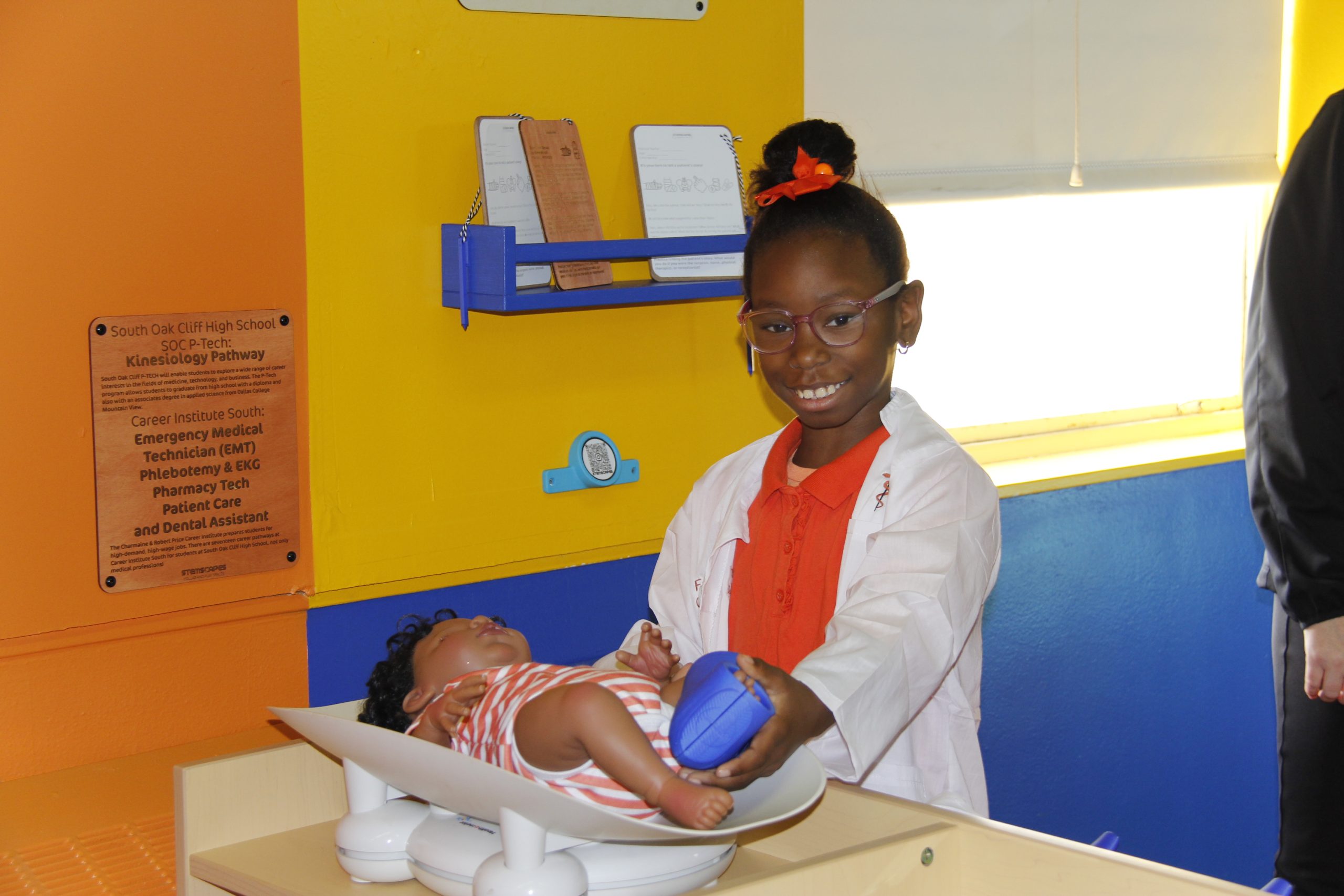 Students can also engage in collaborative problem-solving and communication exercises using custom lab coats, clipboards with scenarios, and a fully stocked receptionist area with phones, a cash register, and time math manipulatives.The innovation lab also serves as an early bridge into the district’s Pathways in Technology learning model. Through P-TECH, students can earn a high school diploma and up to 60 hours of college credit at no cost, providing them with a head start in medical and other STEM careers.