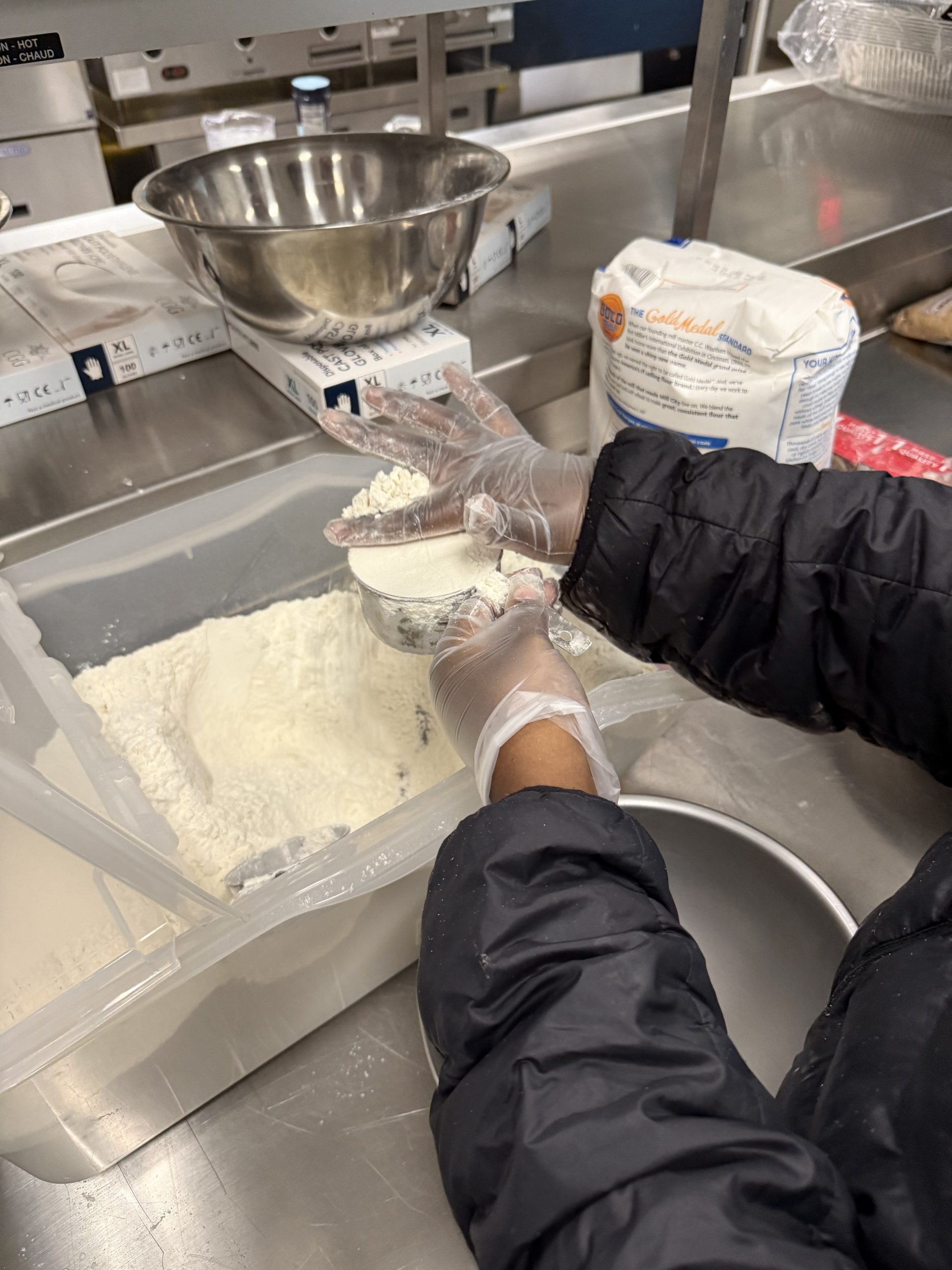Under the guidance of Cheryll Harris, a chef who leads the Culinary Arts Pathway, they prepare dinner and volunteer at community events each Thanksgiving season, continuing a long-standing Roosevelt tradition of giving back. “It takes several weeks of planning, organizing donations, and coordinating volunteers,” Harris said. “Prep has been busy but exciting as everyone works together to get everything ready.”