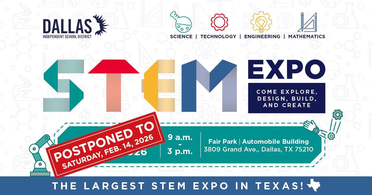 Due to anticipated winter weather, the 2026 STEM Expo for Saturday, Jan. 24, 2026 has been postponed to Feb. 14, 2026.