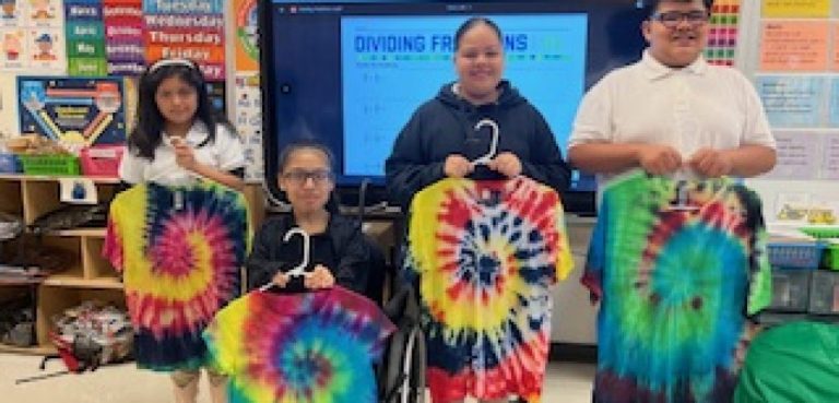 Through her grant project, students use T-shirts, fabric dye, cups, and other materials to explore color theory and develop fine motor skills. The sensory art-based project encourages active learning as students engage with different textures and processes. As they measure and mix dyes with water and study geometric patterns, students are reinforcing math and science concepts.
