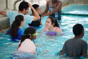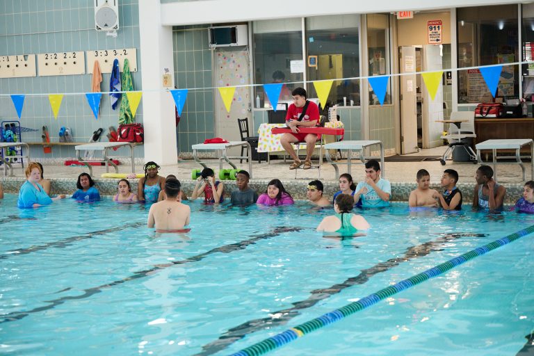 Lessons are designed to build upon themselves week after week as students gain physical strength and fluency in the water. While some are perfecting their form, others are beginning to swim laps. As they build physical endurance and confidence, they sharpen their ability to follow multi-step verbal directions and practice teamwork.