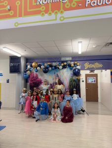 The stage was framed by balloons and a colorful backdrop. Children arrived dressed as princesses, princes, and storybook characters. Then, to a chorus of excited whispers, Cinderella and Prince Charming walked in, took their seats on stage, and began to read aloud.